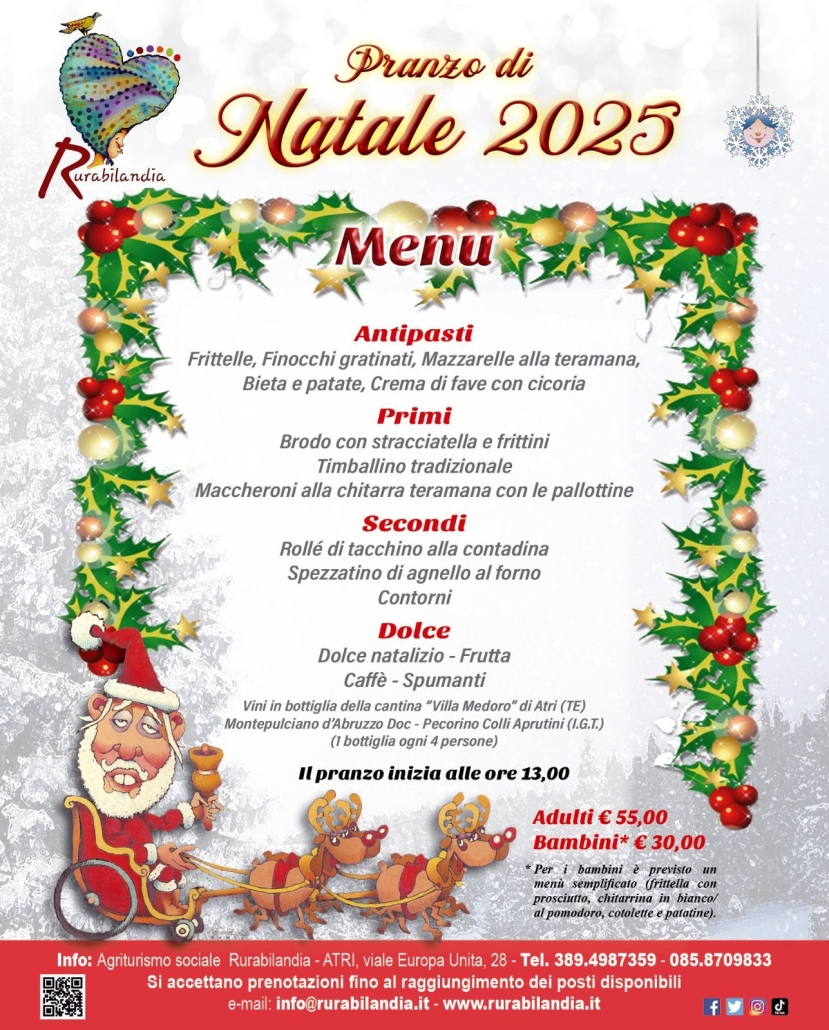 🎄 Ti aspettiamo giovedì 25 dicembre alle ore 13:00 per il tradizionale Pranzo di Natale a Rurabilandia, agriturismo immerso nel verde d’Abruzzo. Un menu ricco di piatti tipici, vini locali e atmosfera familiare ...